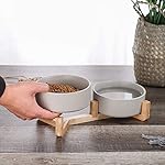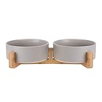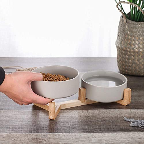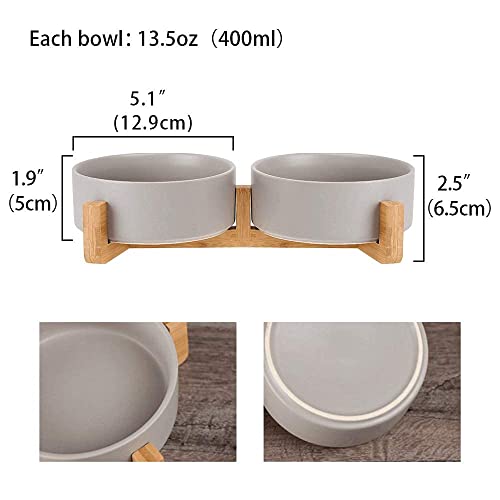 Grauer Keramiknapf für Katzen und Hunde, mit Holzständer, kein Verschütten von Tierfutter, Wasser-Futterstation für Katzen und kleine Hunde, 2er-Set