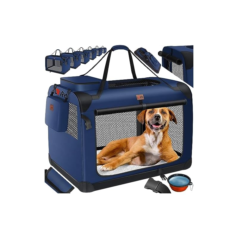 Lovpet® Hundebox Hundetransportbox faltbar Inkl.Hundenapf XXXL 102x69x69cm Transporttasche Hundetasche Transportbox für Haustiere, Hunde und Katzen Haustiertransportbox Navyblau