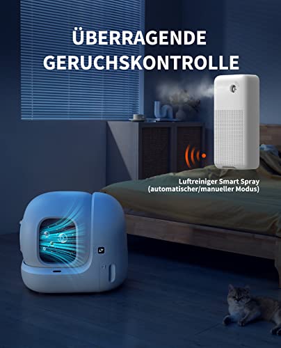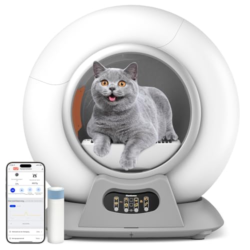Selbstreinigende Katzentoilette, Katzenklo Selbstreinigend Extra 65L/Abnehmbarer Sandkontrollkasten/Sicherer Alert/APP-Steuerung/Anti-Pinch/Geruchsisolierende Katzentoiletten für Mehrere Katzen