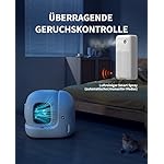 Doppelte Geruchsentfernung:Der Abfall wird in einen Abfallbehälter im Inneren des PURA MAX befördert. Der dicht verschlossene Abfallbehälter verhindert unangenehme Gerüche. Automatische Desodorierung nach der Reinigung. Geplante Desodorierung per App. Entfernt unangenehme Gerüche und Aldehyde.