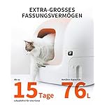 76L Extra Großes Fassungsvermögen für Mehrkatzenhaushalte: Größe des Inneneimers: 48cm*52cm (Durchmesser), Volumen des Inneneimers: 76L, Einstiegshöhe über dem Boden: 20cm.Tipps: Anwendbarer Gewichtsbereich für Katzen: 2 kg bis 8 kg, keine Verwendung für junge Haustiere unter 6 Monaten.