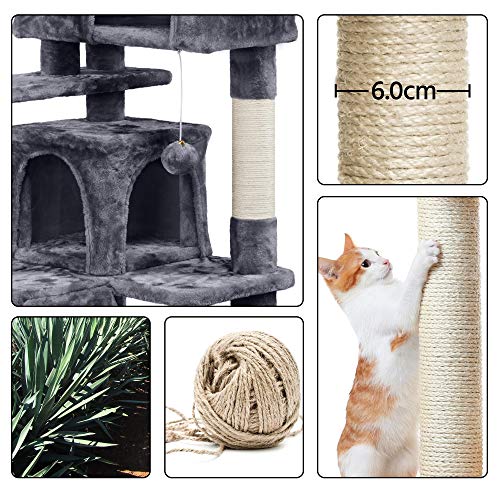 Yaheetech Kratzbaum Stabiler Katzenbaum Katzenkratzbaum Katzenmöbel, Kletterbaum für Katzen Höhe 137 cm, Dunkelgrau